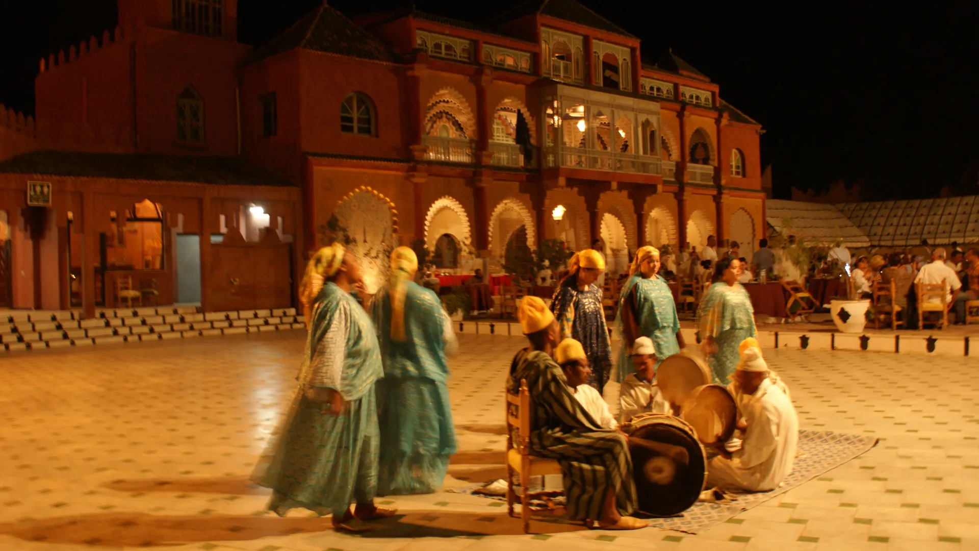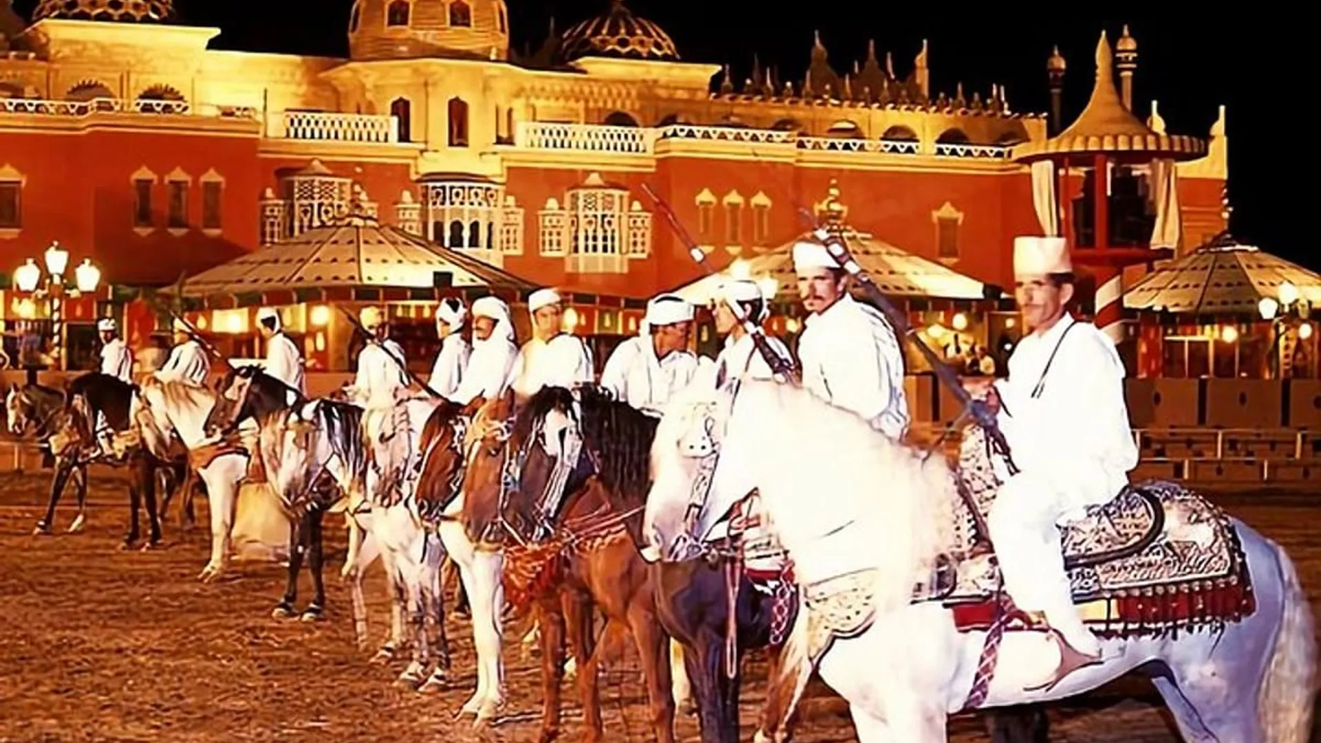 Immerse yourself in the magic of the Thousand and One Nights during an unforgettable evening at Chez Ali, in the heart of the Palmeraie de Marrakech. In a setting worthy of an oriental tale, enjoy a sumptuous Moroccan dinner under large caïdal tents, accompanied by folk troupes from all over the kingdom. The evening culminates with a breathtaking show: acrobatic riders, dancers, traditional music, fantasia shots, and a grandiose finale featuring a Berber legend. A true cultural journey between dream and tradition.