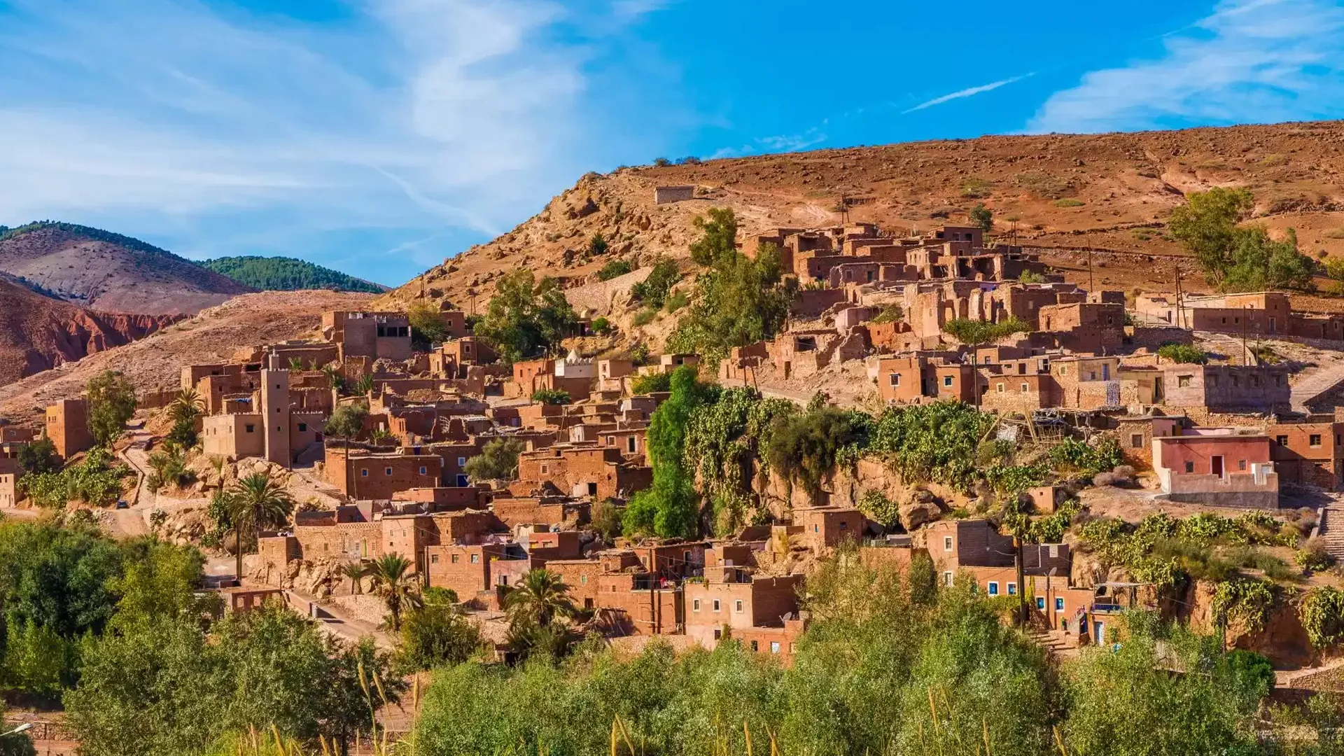Discovering the hidden treasures of the Moroccan Atlas Go for an exceptional day to discover the 3 most beautiful valleys of the High Atlas: the green valley of the Ourika, the lunar landscapes of the Kik Plateau, and the mountain panoramas of Imlil, at the foot of Mount Toubkal. You’ll cross authentic Berber villages, cross refreshing wadis, and enjoy spectacular views along the way. A highlight of the day: an exclusive stop in Tamadot, a sumptuous domain belonging to Mr. Richard Branson, where luxury and serenity mix with the natural beauty of the site. This excursion is a compendium of nature, culture, and scenic change, just a few kilometers from Marrakech.